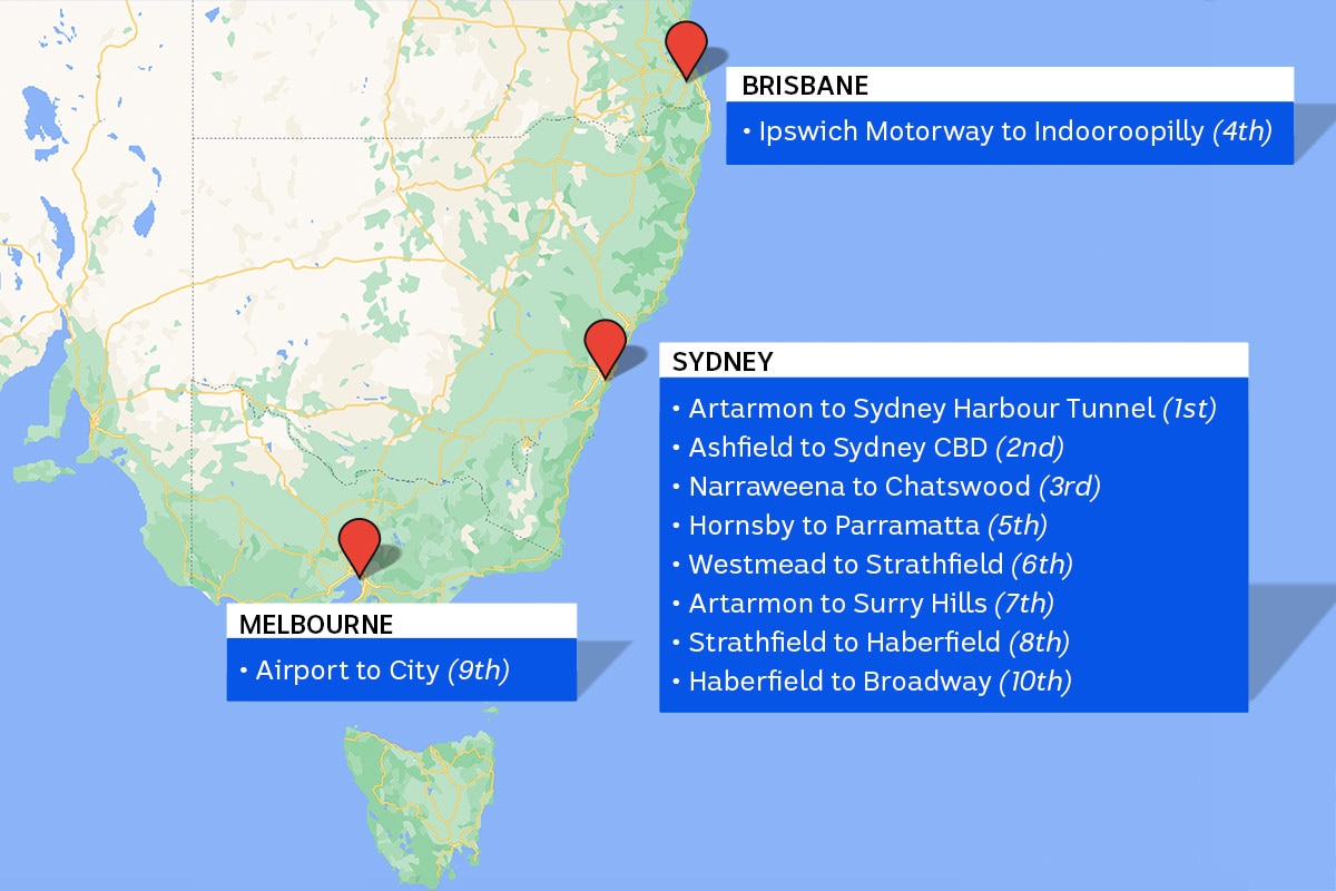 That audit found the focus on Melbourne for car parks did not line up with Australia's traffic problems: eight of the country's 10 most congested roads are in Sydney and just one is in Melbourne.