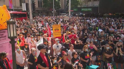 Protests have erupted in Sydney's CBD, with hundreds gathering to show their support for Indigenous Australians, some brandishing signs with the words "Change the date".