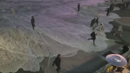 Waves crashed high enough to reach a pedestrian walkway and the RSL at Bondi Beach in Sydney overnight.