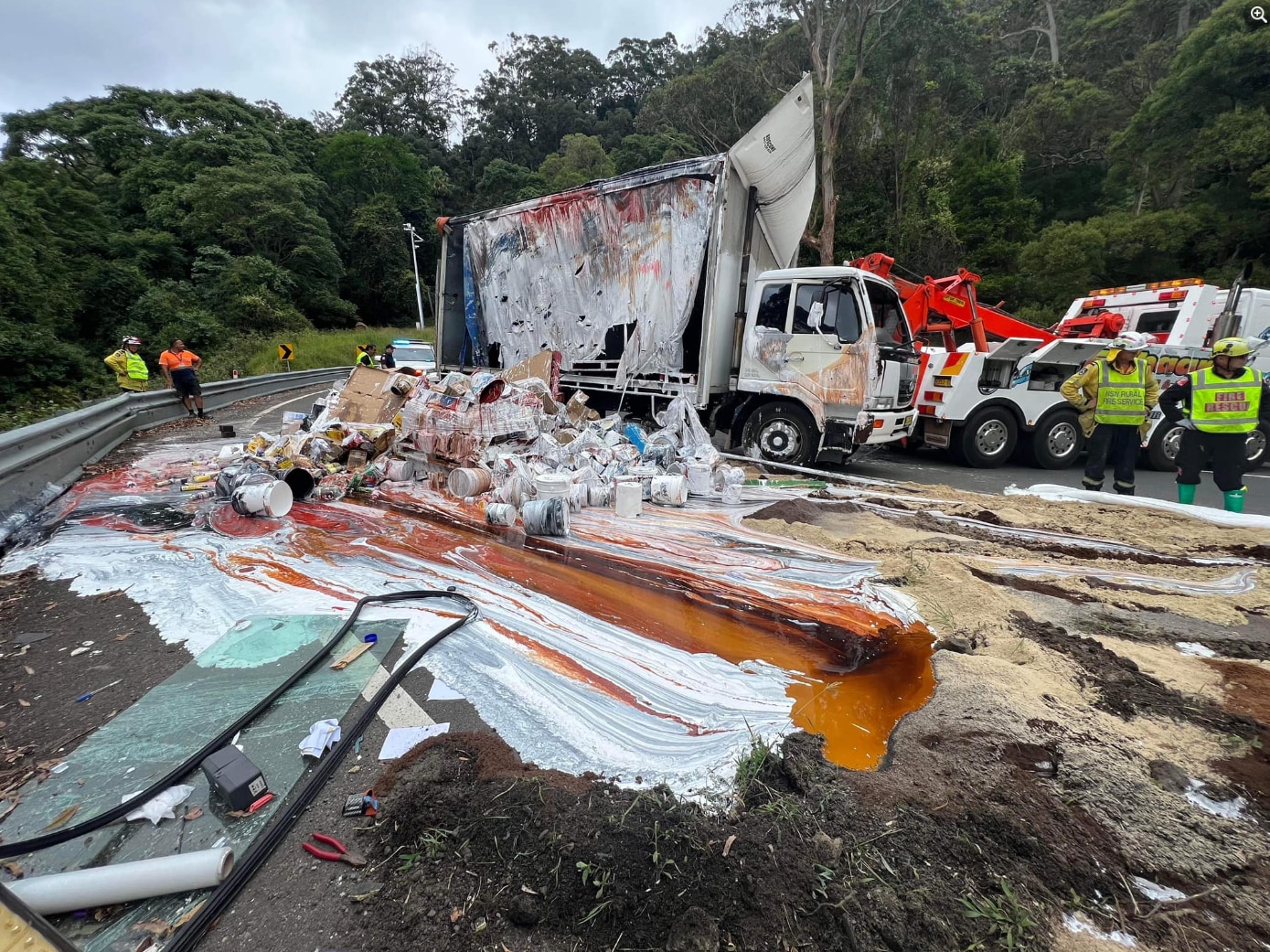 "There is around 1,000 litres of paint that has flown onto the road and up to 2,000 litres that are now liquid inside the back of the truck."