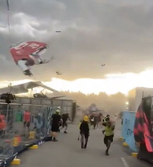 The strong winds also damaged the temporary structures around Barangaroo where the SailGP is being held.