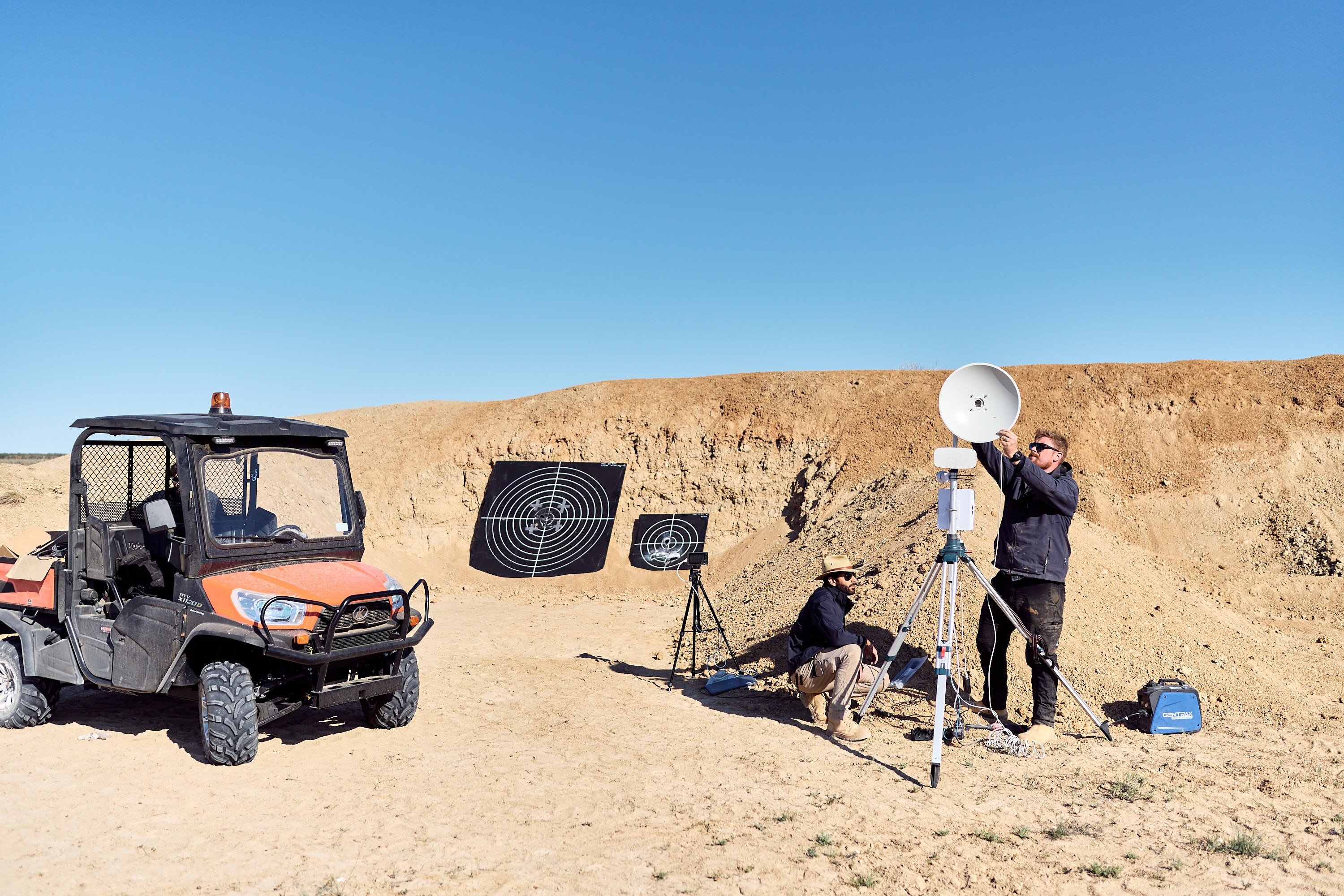 At the Klondyke Range Complex (around 800 kilometres north-west of Sydney) the ABC was last month invited to watch as EOS unleashed a developmental 34-kilowatt high energy laser system against small quadcopter drones out to distances of 1,000 metres and beyond.