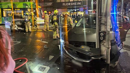 The 26-year-old driver of a white Toyota sedan was swiftly arrested after the mayhem broke out at the Russell Street and Swanston Street intersections on Bourke Street just after 6pm.