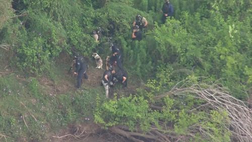 The two men were arrested near a riverbank behind a Big W in Kempsey, with heavily armed police taking the pair into custody after an hours-long manhunt.