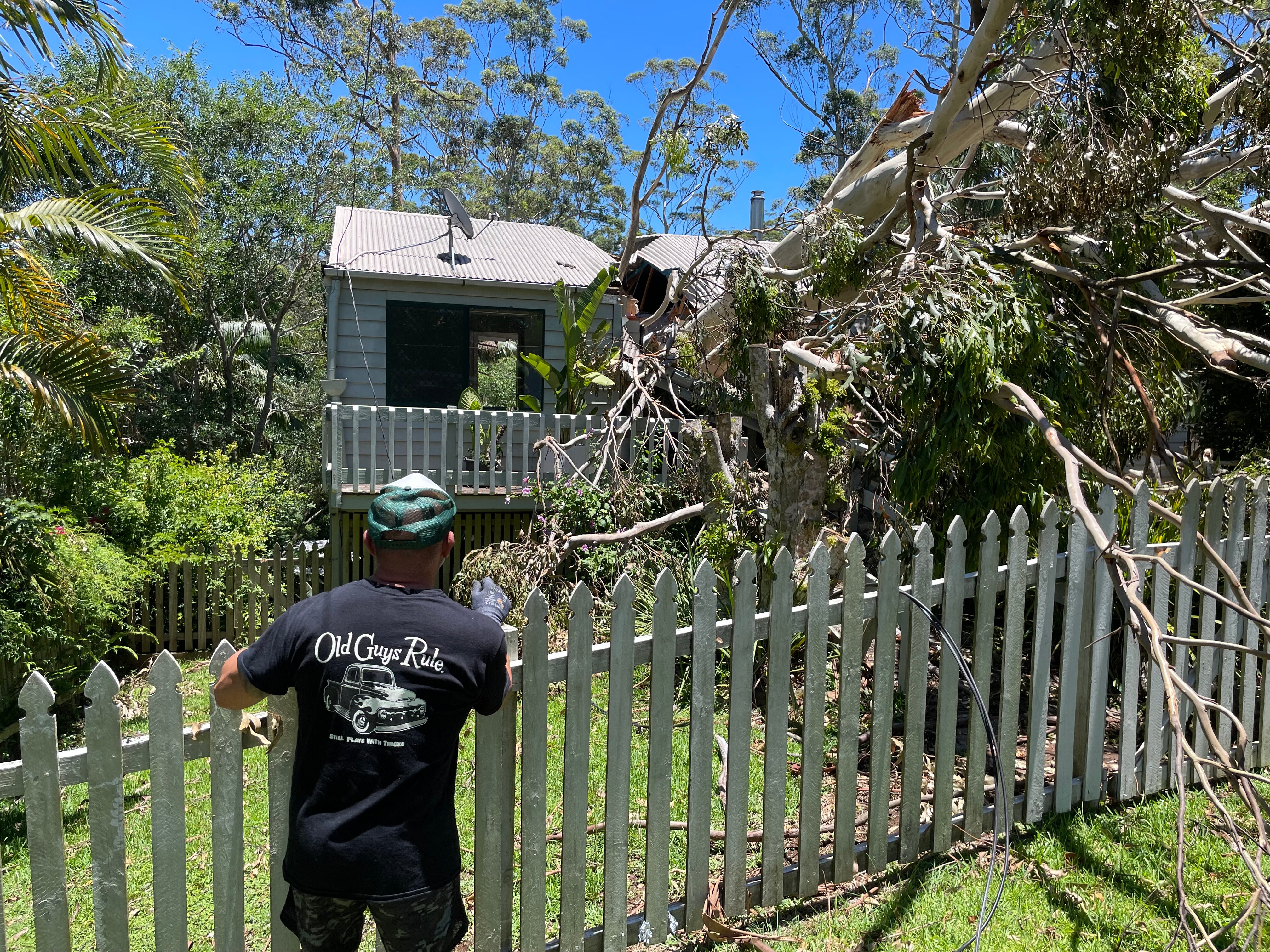 He was camping in northern New South Wales when the tornado splintered gum trees, which came down like a tonne of bricks on his Tamborine Mountain home.